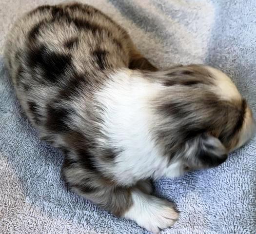Mini Aussie Puppy three weeks old red merle Smokey Valley Kennel